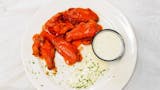 Chicken wings on the bone, tossed in a flavorful sauce of your choice, and served with a side of dressing.